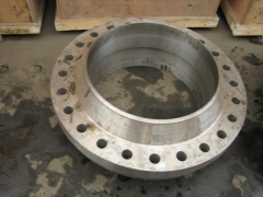对焊法兰模锻全称为模型锻造法兰,将加热后的坯料放置在固定于模锻设备上的锻模内锻造成形的。对焊法兰的基本工序 工艺过程:下料、加热、预锻、终锻、冲连皮、切边、调质、喷丸。常用工艺有镦粗、拔长,折弯、冲孔、成型。对焊法兰常用模锻设备 常用模锻设备有模锻锤、热模锻压力机、平锻机和摩擦压力机等。对焊法兰通俗地讲,锻造法兰质量更好,一般是通过模锻生产,晶体组织细密,强度高,当然价格也贵一些。对焊法兰无论是铸造法兰还是锻造法兰都属于法兰常用制造方法,看需要使用的部件的强度要求,如果要求不高,还可以选用车削制法兰。对焊法兰在中板上直接切割出法兰的留有加工量的内外径及厚度的圆盘,再进行螺栓孔及水线的加工。这样生产出来的法兰就叫做割制法兰,此类法兰最大直径以中板的幅宽为限。卷制法兰用中板割条子然后卷制成圆的工艺叫做卷制,多用于一些大型法兰的生产。卷制成功之后进行焊接,然后压平,再进行水线及螺栓孔的工艺的加工。